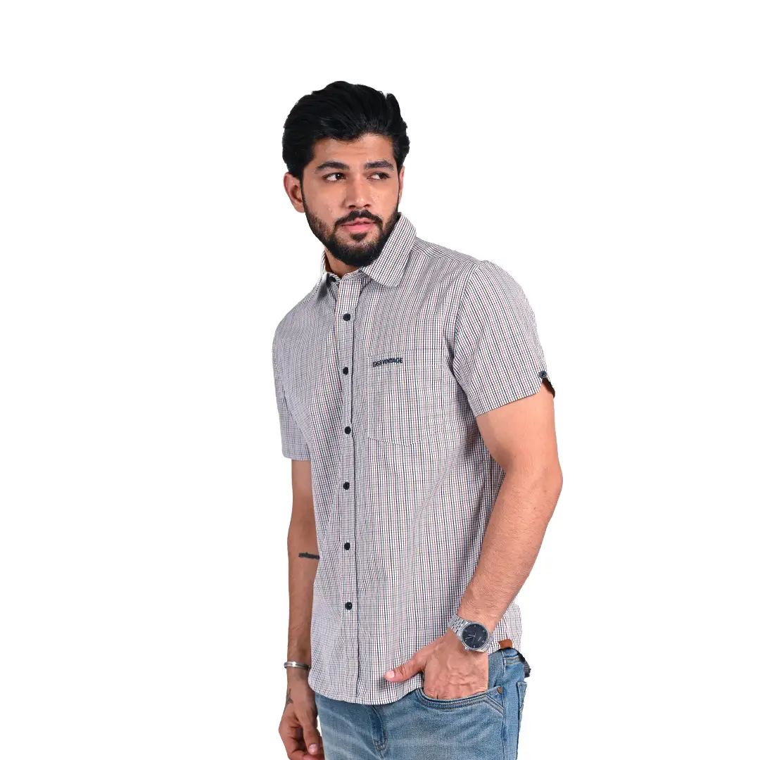 Revamp your wardrobe with our Men’s Checks Half Sleeve Shirt, available in three stunning colors: Grey, Black, and Red. Crafted from premium cotton, this shirt ensures unmatched comfort and breathability, making it your go-to choice for casual and semi-formal occasions.
